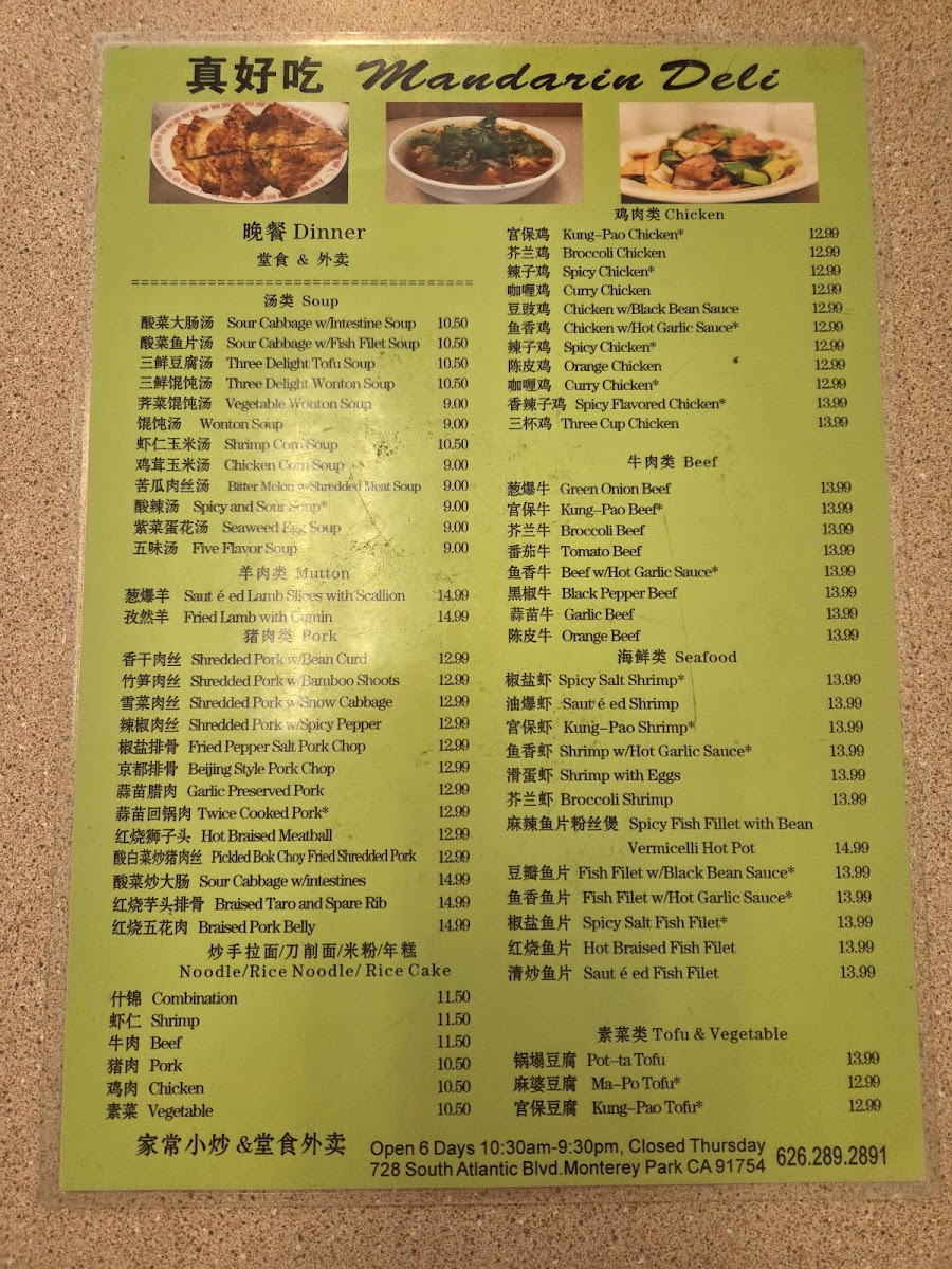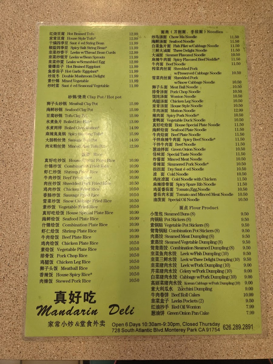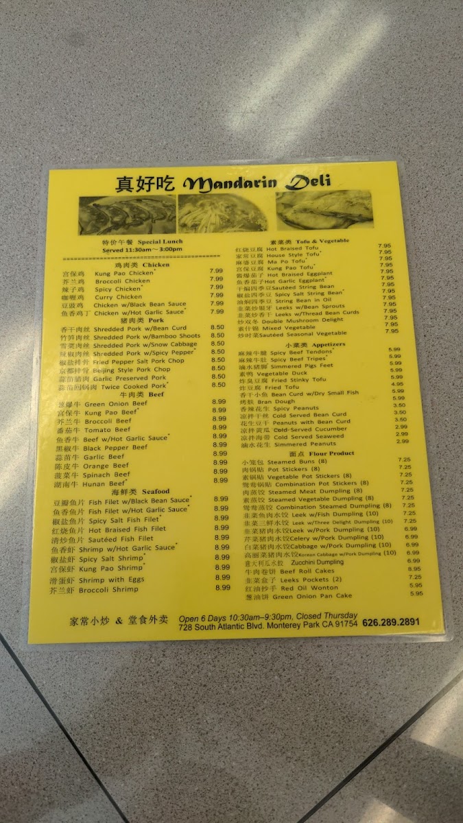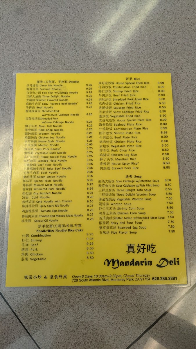 Welcome to Mandarin Deli, an authentic Taiwanese gem nestled in the heart of Monterey Park. Located at 728 S Atlantic Blvd #103, this modest deli serves up a delectable array of comforting dishes that will transport your taste buds straight to Taiwan. With a solid reputation amongst locals and visitors alike, Mandarin Deli is a must-visit for those seeking genuine flavors and a casual dining experience.